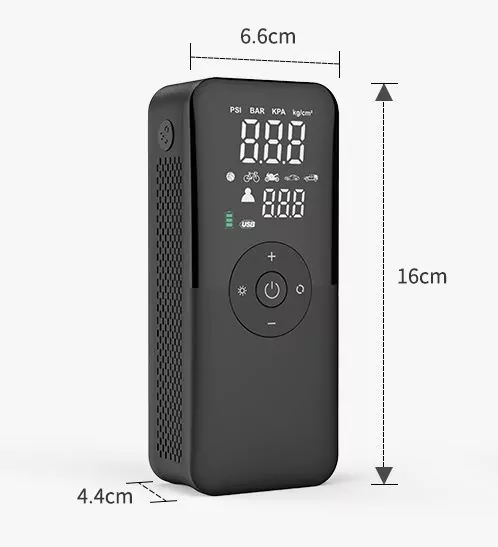 Garanta a liberdade de viajar sem preocupações com o Compressor De Ar Digital Portátil - Infla pneus rapidamente e ainda carrega seus dispositivos!