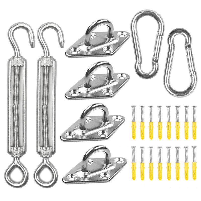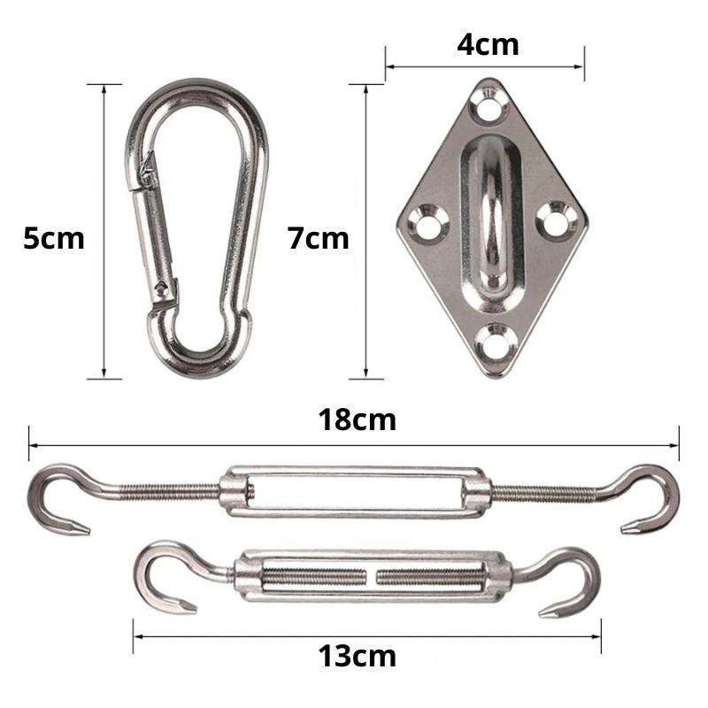 Suporte fixo para toldo em aço inox, garantindo 100% de fixação com ganchos de tamanho adaptável.