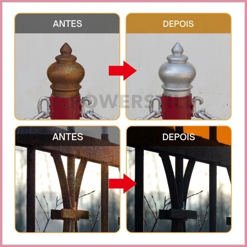 Imagine nunca mais ter que se preocupar com ferrugem ou corrosão em seus metais. O Removedor de Ferrugem Instantâneo é a revolução que você esperava: remove ferrugem, transforma a superfície em um escudo protetor e previne danos futuros.